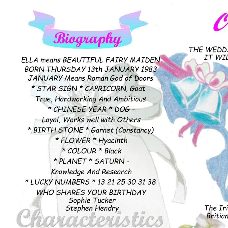 Our Wedding Day Chart is full of fascinating facts about the day of the marriage from facts about films, songs, sport, news and prices of products such as newspapers, bread etc.