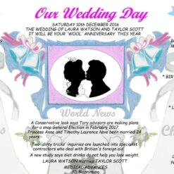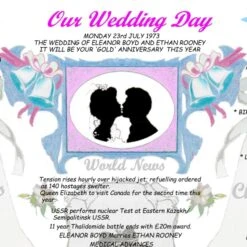 Our Wedding Day Chart is full of fascinating facts about the day of the marriage from facts about films, songs, sport, news and prices of products such as newspapers, bread etc.