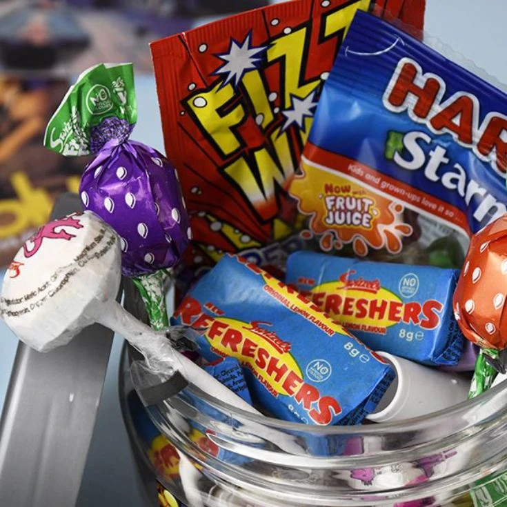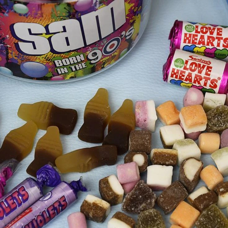 This 90’s themed taster jar of sweets is packed full of retro sweets ranging from Love Hearts and Fizzers, to Lollies and Dolly Mixtures just to name a few.