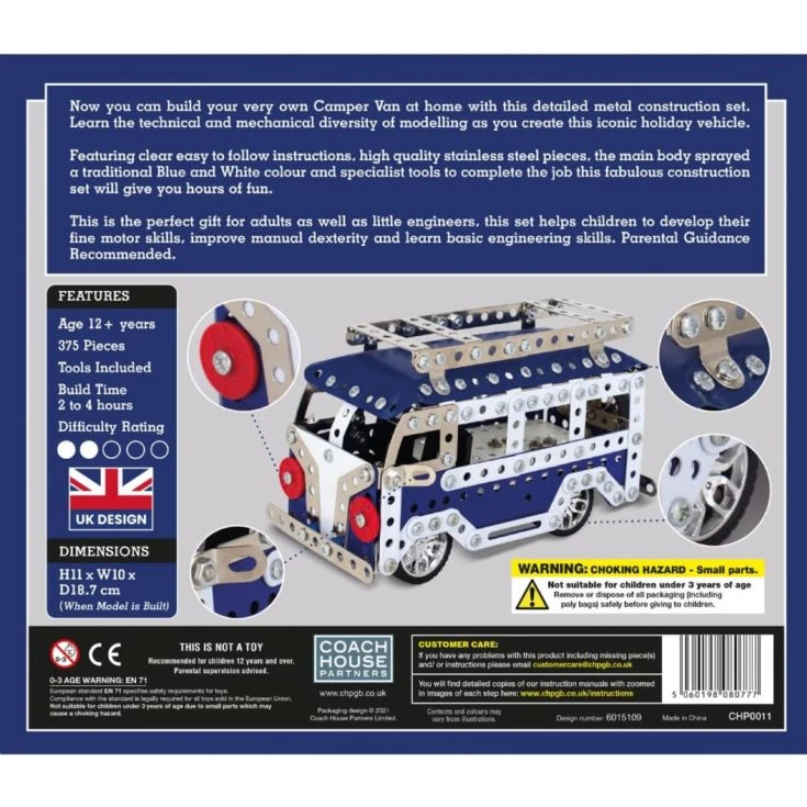Break out your inner engineer and get ready to build with this Camper Van Model Metal Construction Set. This unique construction set looks like a real camper van when built. Get together with a friend or use it as a father-and-child project and spend some time laughing and hanging out. This model set is rated at a difficulty level of 2 (out of 5), so it’s an excellent gift for a beginner or intermediate model builder. A great idea for those who enjoy model kits! Product Reference: FM-CHP005