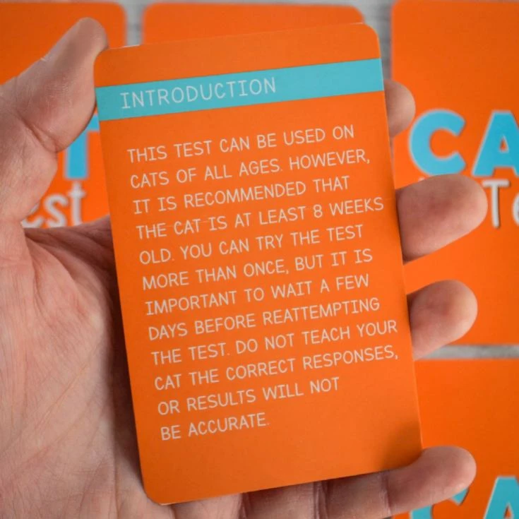- Measures cat’s communication and motor skills, social behaviour, and memory.