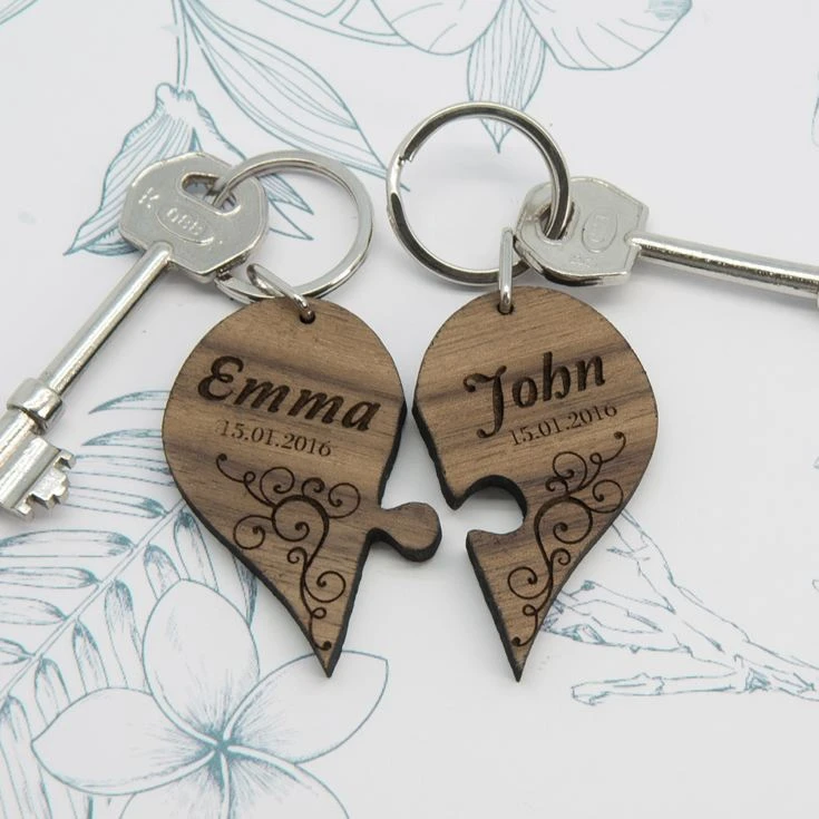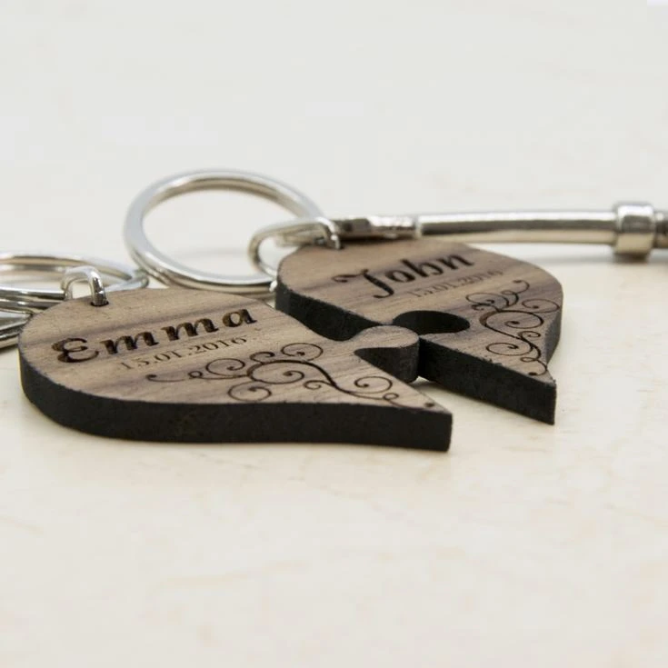 Celebrate your love with this beautiful Walnut Wood joining heart keyring.