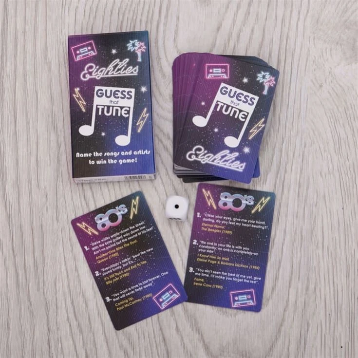 Complete with more than 150 songs to guess, the aim of the game is simple: get as many cards under your belt as possible. The rules are simple: roll the dice to decide which song to guess; the person to the right reads out the lyric on the card; guess the card correctly and win said card. Guess both song and artist to get a second go!