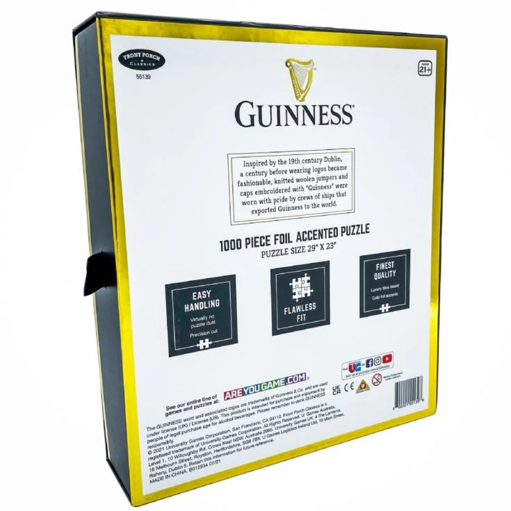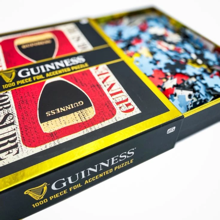 Guinness is a widely recognisable brand, with fans around the world. This unique high quality puzzle is designed to be a perfect gift for any Guinness lover. With an elegant satin pull and slide drawer opening, with embossed and foil accented packaging and puzzle, this puzzle makes a memorable, luxurious, and top quality gift. Product Reference: FM-UNI027