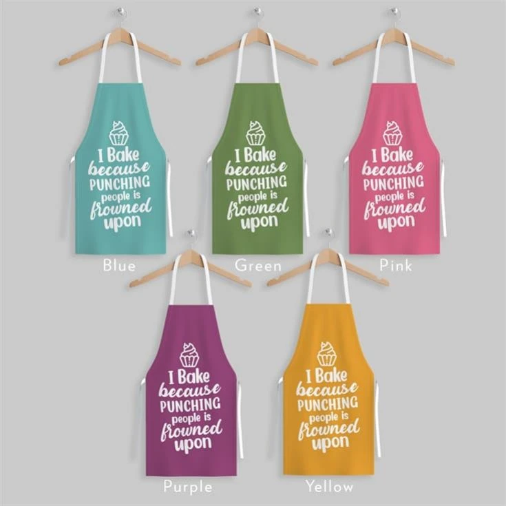 - Features words “I Bake Because Punching People Is Frowned Upon” in a range of fonts.