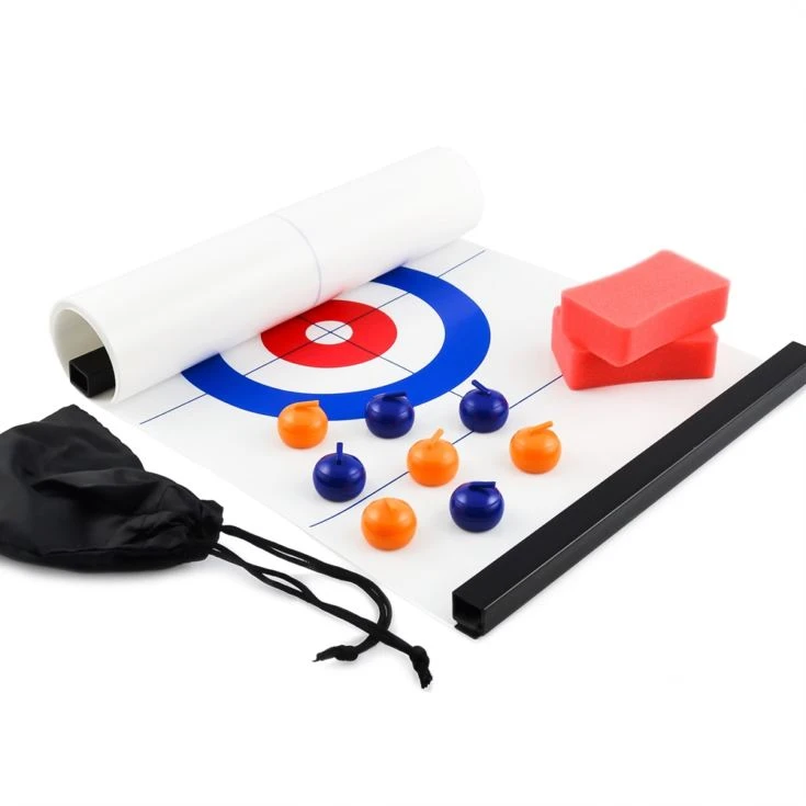 This fun and unique Indoor Curling Game is a great way to spend a rainy afternoon. Find a flat surface, roll out the mat, and attach the magnetic bars on each end. Then curl away. The stones are balanced so they slide along, just like on the ice. The game is easy to play and perfect for almost everyone. Grab the family and start a curling match! A wonderful gift for Christmas or birthdays. Product Reference: FM-FUN296