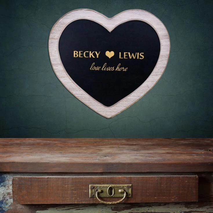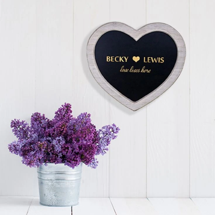 Laser engraved, this ‘Love Lives Here’ heart chalkboard comes as standard as well as the words ‘love lives here’. Personalise with names and made from sustainable mango wood.
