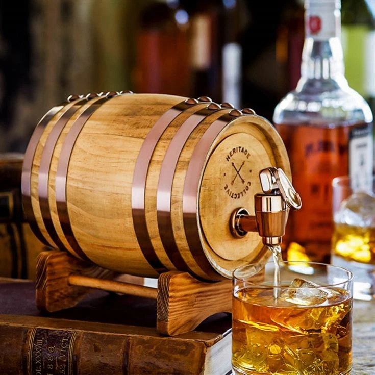 “Heritage Collective” is engraved above the barrel tap with two arrows in between, adding to the sophistication of this great whiskey gift.