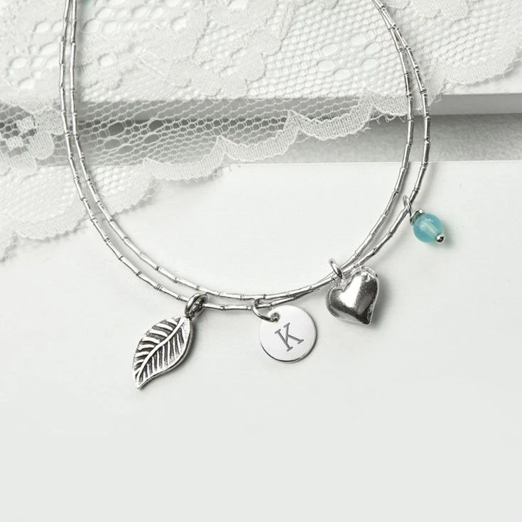 The bracelet has a total of four different charms, including a round disc with space on both sides for personalisation. The delicate heart charm symbolises the heart both mum and baby once shared, and the love they still do.