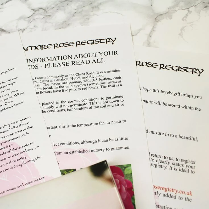 Show someone how special they are by buying them a Rose named after them. They will receive all the seeds and full instructions on how to grow and care for their rose, and will be able to send off a registration card to receive a personalised certificate of registry.