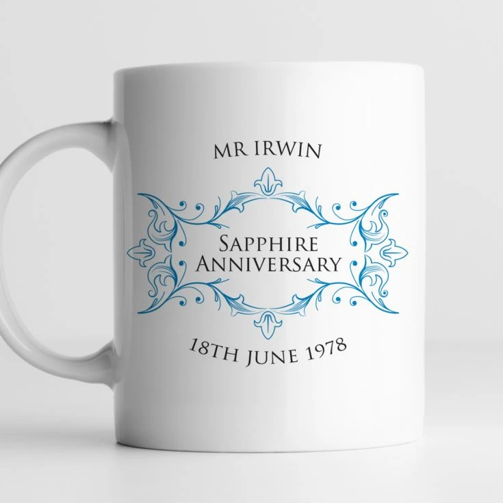These pair of Personalised Sapphire Anniversary Mugs make a novel and quirky gift for the special couple who are celebrating 45 years of marriage and is sure to bring a smile to their faces.