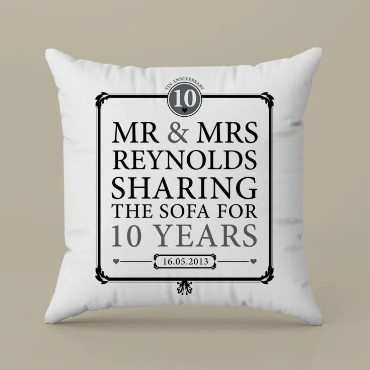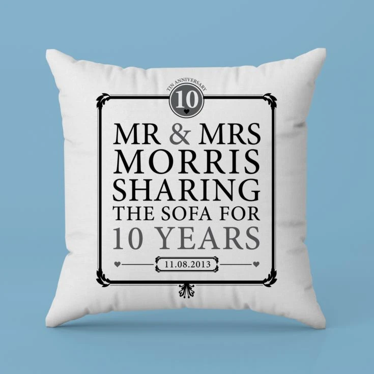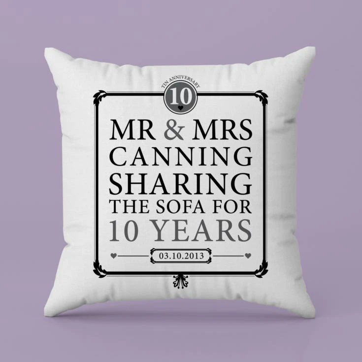 This Personalised 10th Anniversary Sharing the Sofa Cushion is a gorgeous, fun gift idea to celebrate such a special milestone in yours or a loved one’s married life.