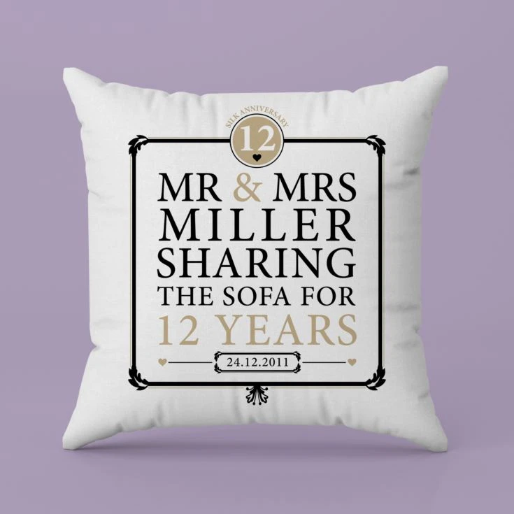 This Personalised 12th Anniversary Sharing the Sofa Cushion is a gorgeous, fun gift idea to celebrate such a special milestone in yours or a loved one’s married life.