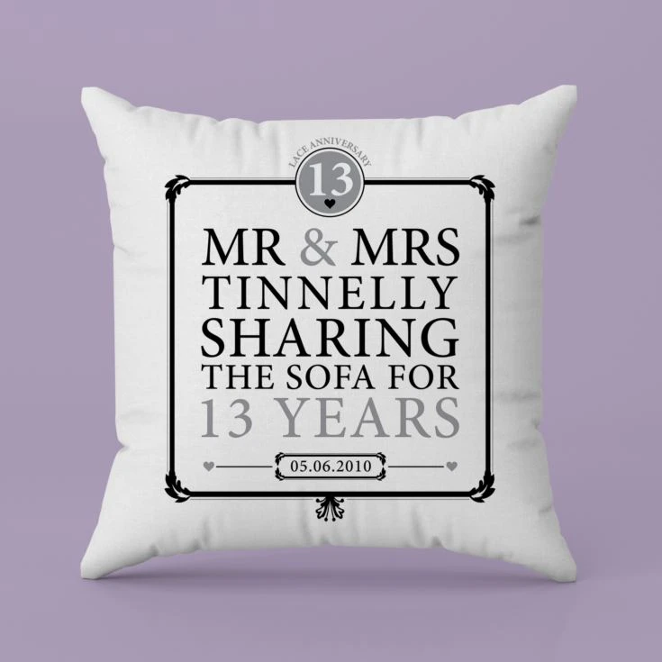This Sharing the Sofa Personalised Cushion makes a lovely personalised gift for any special couple celebrating a their 13th wedding anniversary.