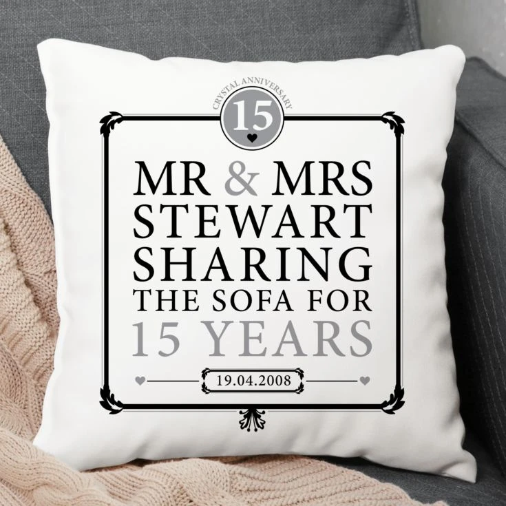 This Personalised 15th Anniversary Sharing the Sofa Cushion is a gorgeous, fun gift idea to celebrate such a special milestone in yours or a loved one’s married life.