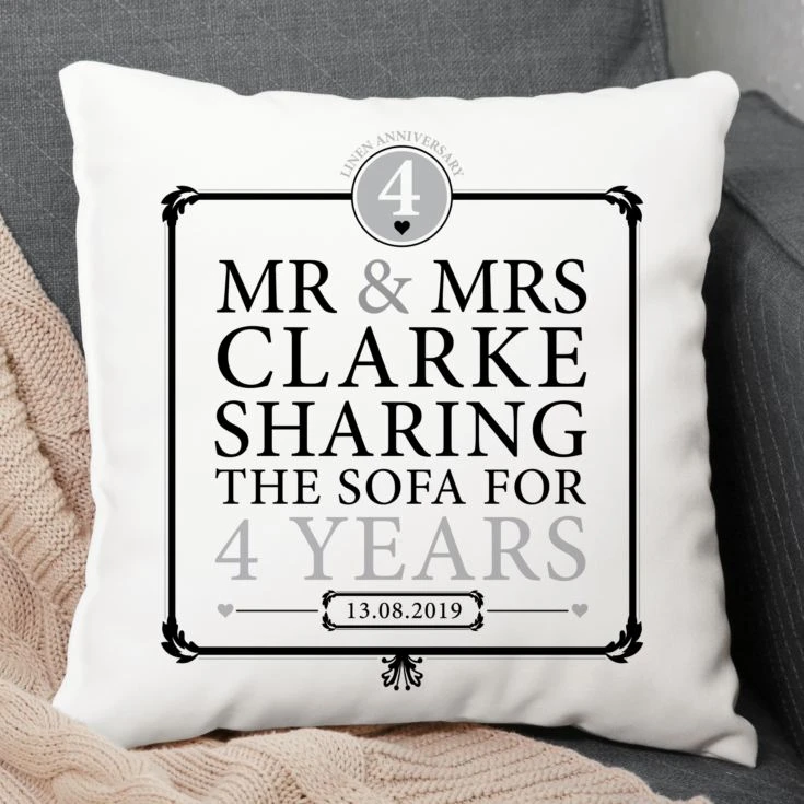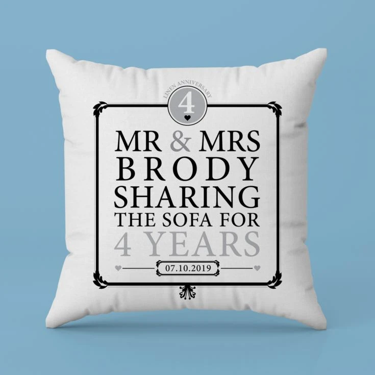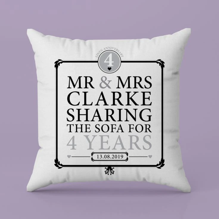 This Personalised 4th Anniversary Sharing the Sofa Cushion is a gorgeous, fun gift idea to celebrate such a special milestone in yours or a loved one’s married life.