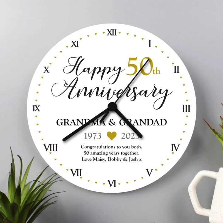 Say Happy Golden Wedding Anniversary to a couple celebrating a fabulous milestone with our Personalised 50th Anniversary Clock.