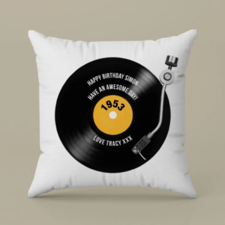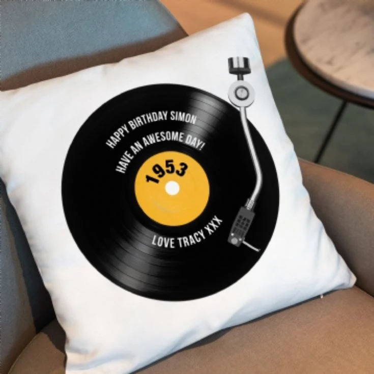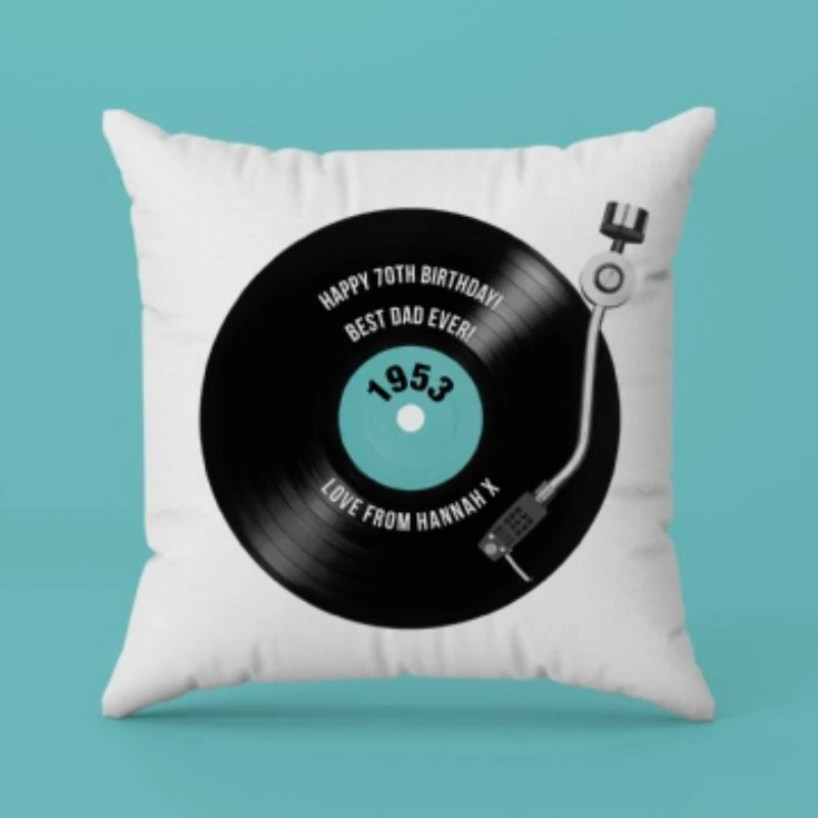 - 1 x Personalised 70th Birthday Retro Record Cushion.
