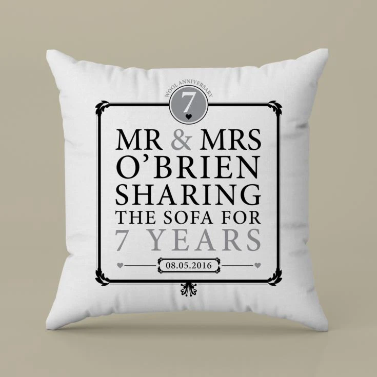 This Sharing the Sofa Personalised Cushion makes a lovely personalised gift for any special couple celebrating a their 7th wedding anniversary.