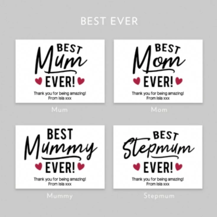 Complete this unique gift by choosing a colourway from the list of options available. Pick Mum/Mummy/Stepmum’s favourite colour to inject that extra bit of personality into your special present.
