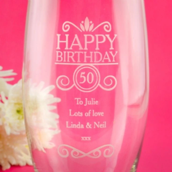 You can create a real keepsake and engrave this vase with an age (up to 2 digits) and a message over 4 lines of 20 characters. The wording ”HAPPY BIRTHDAY” is a fixed part of the design.