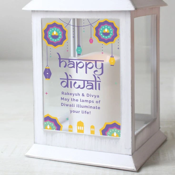 Our personalised Diwali White Lantern is a great way of adding to the decor for the festival of lights.