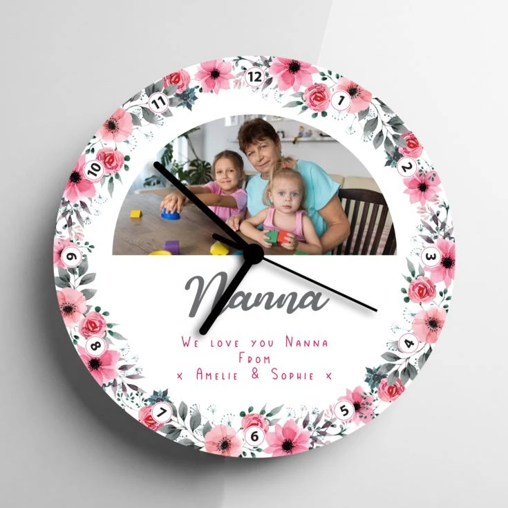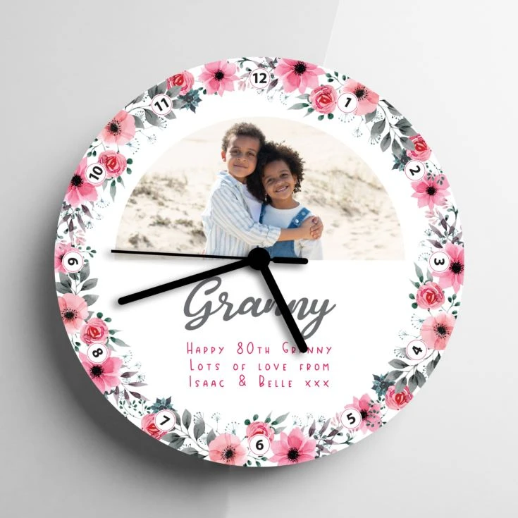 If it’s that time of year again when you’re looking for a special gift with a bit of a difference then this gorgeous Personalised Floral Grandma Photo Clock would make the perfect gift. With its stunning floral design entwined with the numbers around the perimeter the clock is also printed with your favourite image.
