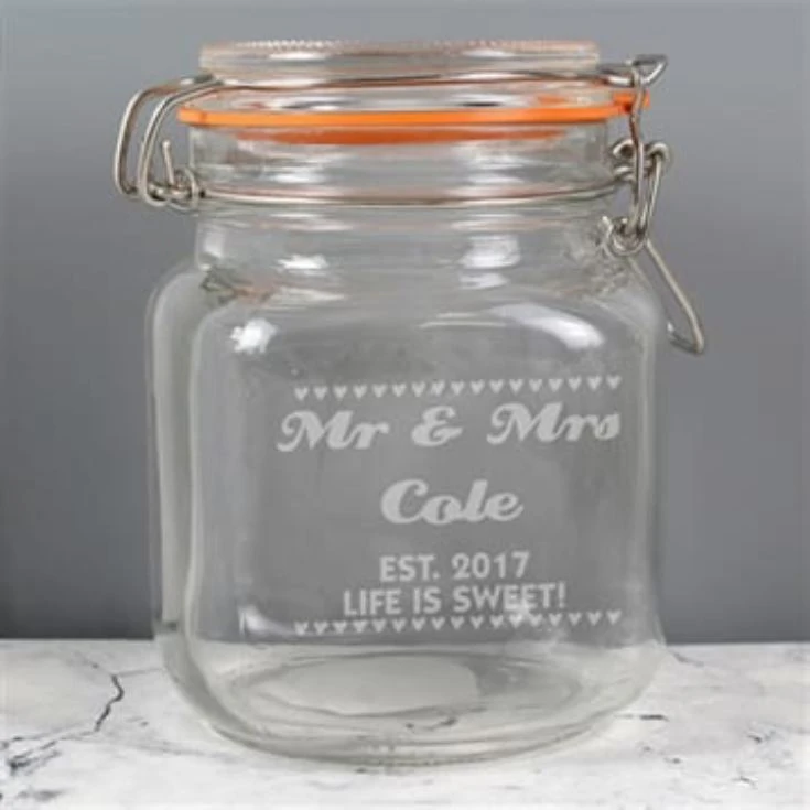 Vintage style and shabby chic gifts are all the rage right now, so our Personalised Kilner Jar is ideal! Your personalised label with be sandblasted directly onto the preserves jar and will make a superb Birthday gift and housewarming present. You can fill it with so many things; from sweets to pasta or homemade chutney…or perhaps you are amazing at making jam? The Personalised Kilner Jar can be customised with 3 lines of text on the front and comes with a gingham circle of cotton for a vintage farm house look!