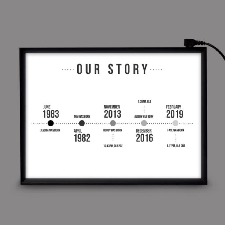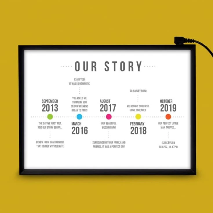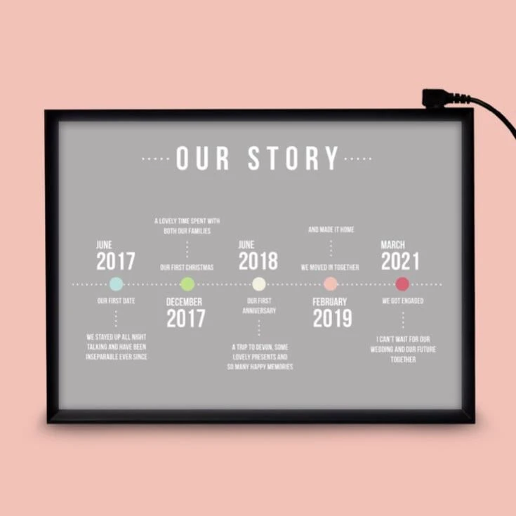 - 1 x Personalised Lightbox – Our Story Timeline