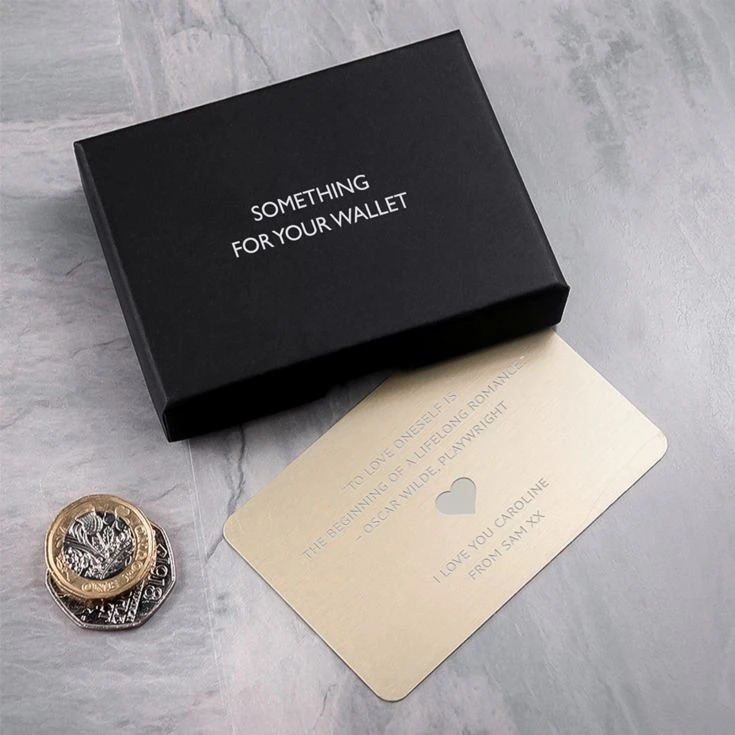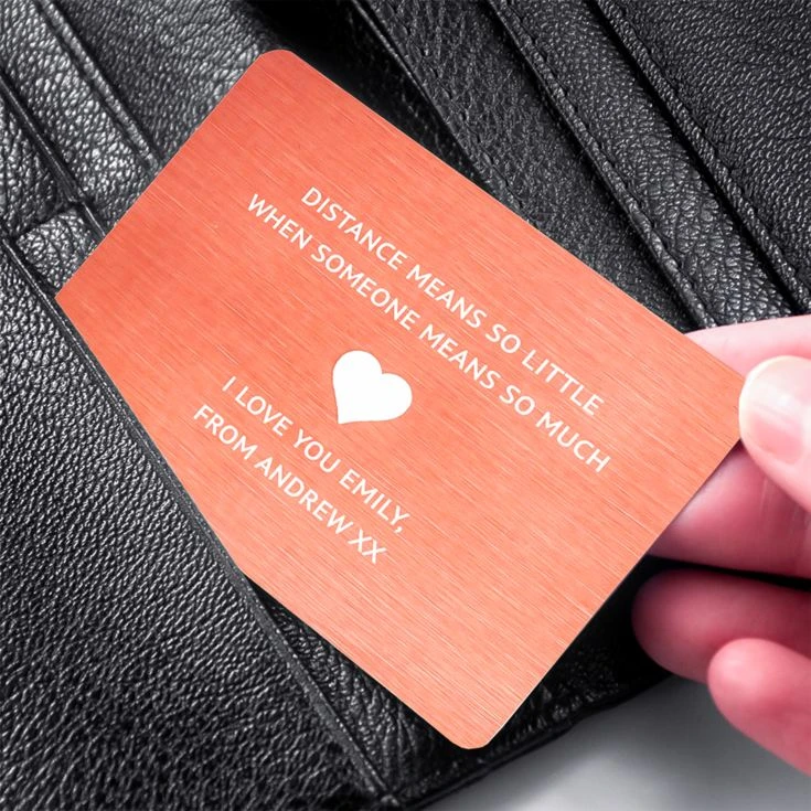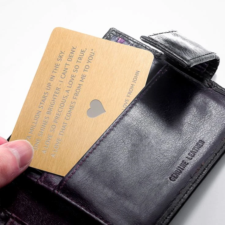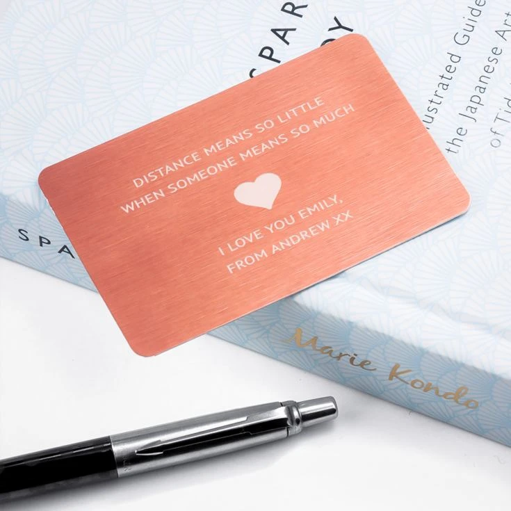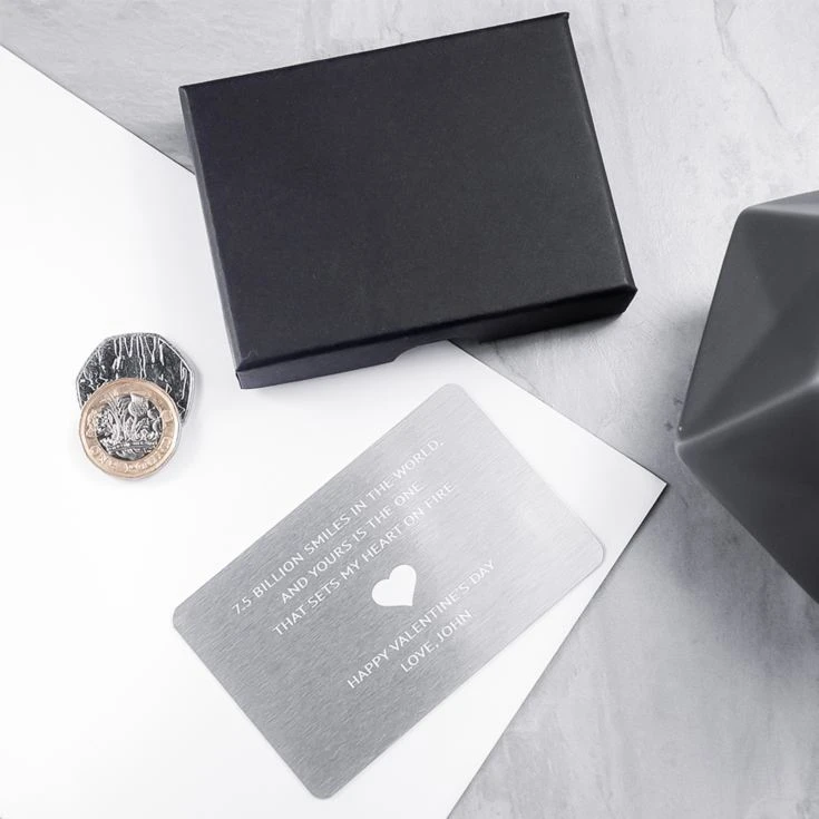 With the heart engraved in the middle of the card, this metal insert is a way to make a love letter or note permanent. It’s a perfect romantic gift,