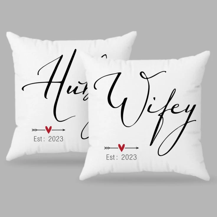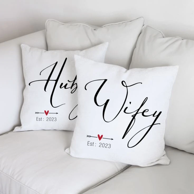This personalised pair of Hubby and Wifey cushions make a great gift for a couple celebrating a special occasion such as an Anniversary or Valentine’s Day. These lovely comfortable cushions have the word Hubby or Wifey on them with the year of their marriage.