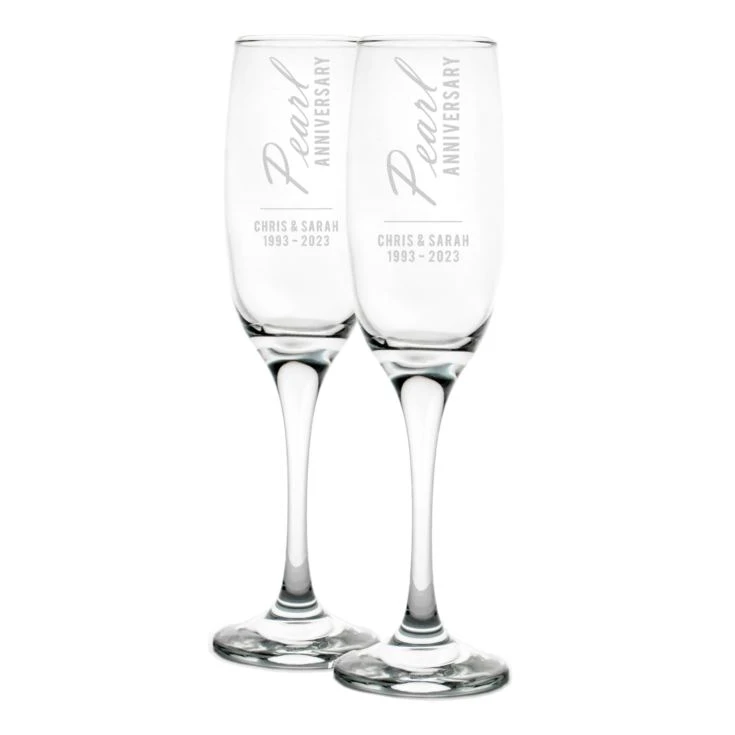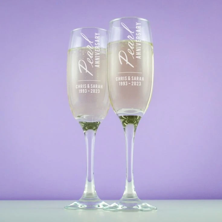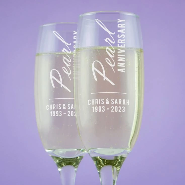 Say a big cheers to that ever so special Anniversary with our Personalised Pearl Anniversary Champagne Flutes.