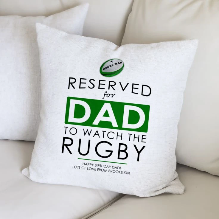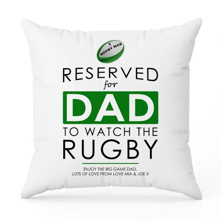 Make sure your Dad has the best seat in the house for the Rugby game with our Personalised Reserved for Dad Rugby Cushion.