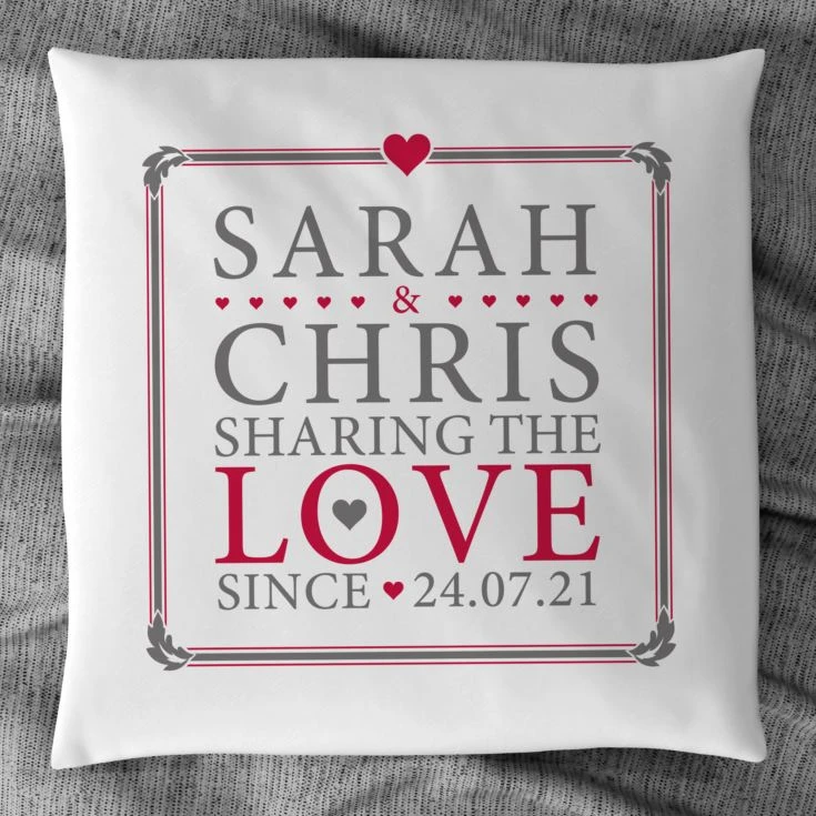 This Personalised Sharing The Love Since Cushion makes a great personalised gift for a special couple celebrating their love for one another.
