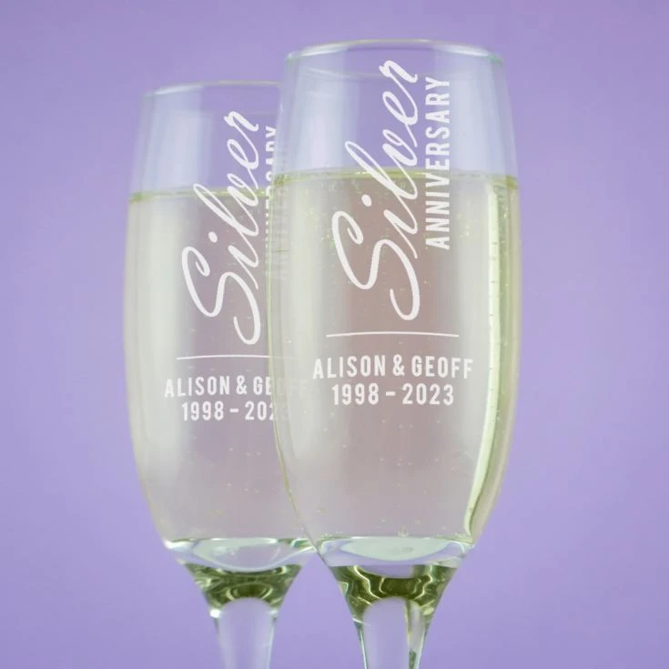 Why not treat your favourite couple to these Personalised Silver Anniversary Champagne Flutes to help them celebrate their 25th Wedding Anniversary in style.