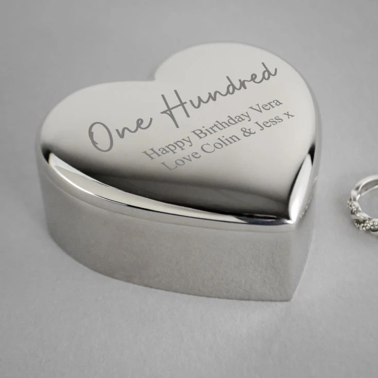 Our beautiful Personalised Silver Plated 100th Birthday Heart Trinket Box could be the gift you’ve been looking for to celebrate your loved one’s special day.