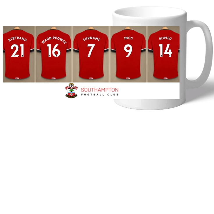Our unique design allows your selected name (max 12 characters) to be merged onto the centre dressing room shirt, exactly matching those of the other Southampton FC players. Choose the number to go on the shirt; perfect for birthdays and anniversaries. Recipients of all ages will love seeing their name on a shirt in the Southampton FC dressing room, right next to those of their heroes. Whether it’s a treat for yourself or a gift for someone special, this mug shows loyalty and support for your team.