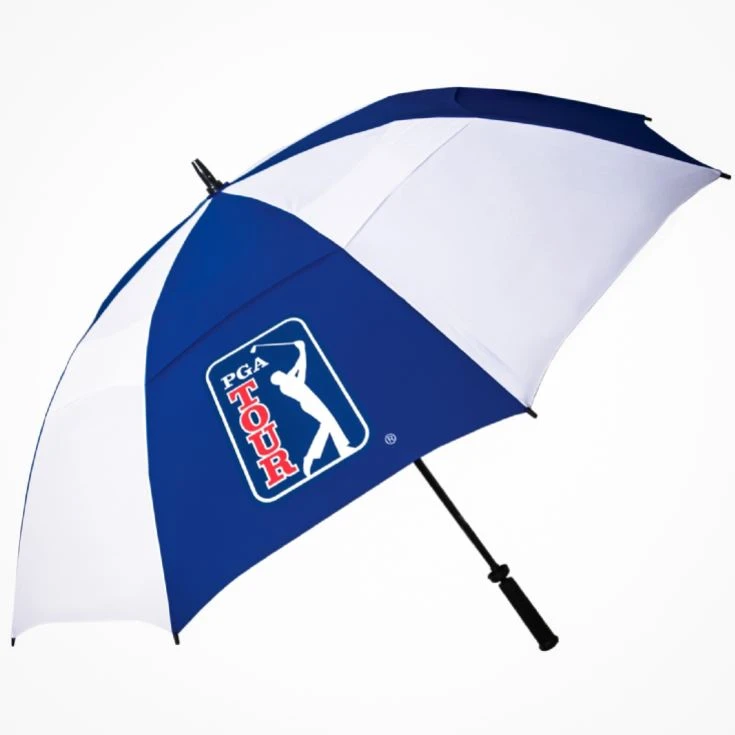 Standing at 62”/158cm it fits perfectly into any standard golf bag. This accommodating umbrella’s stylish blue & white design comes with official PGA Tour branding. Designed to be sturdy enough even in the strongest of winds and harsh weather.