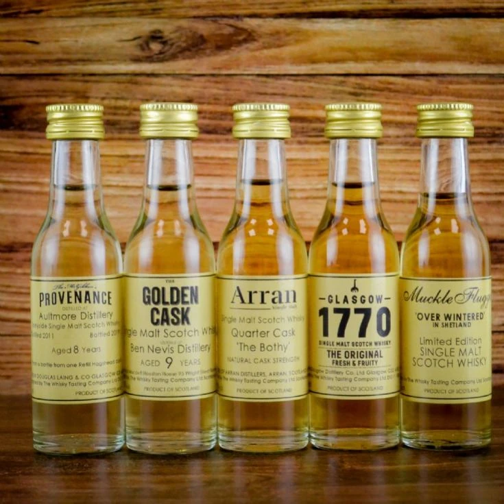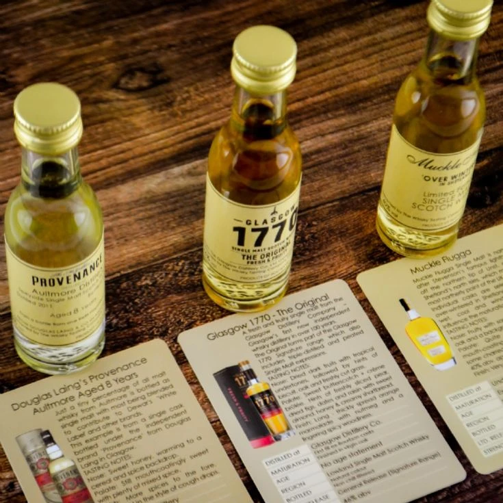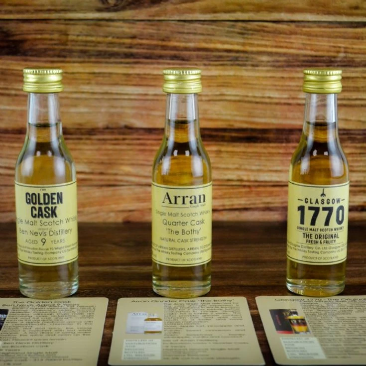 Sit back in luxury and enjoy this fabulous Scottish Whisky Tasting Gift Set. Showcased in a branded box, the set contains five different single malts that have been aged for up to 12 years. Each bottle contains 30 ml of whisky and has a complimentary luxury tasting card.