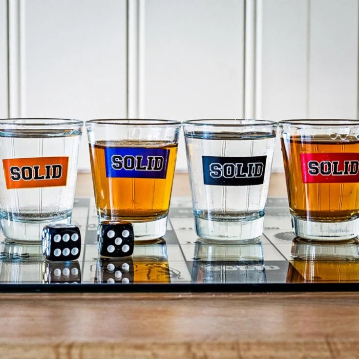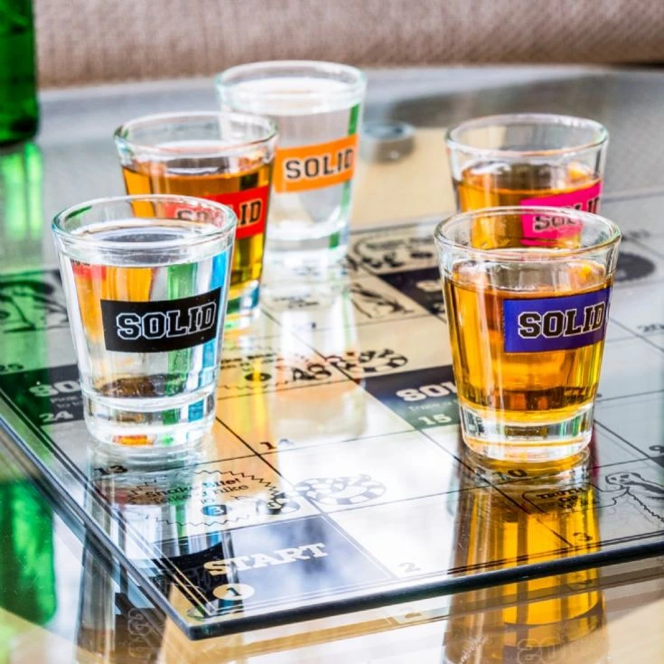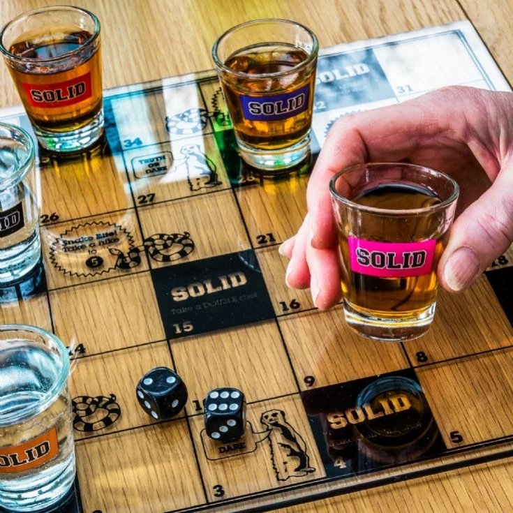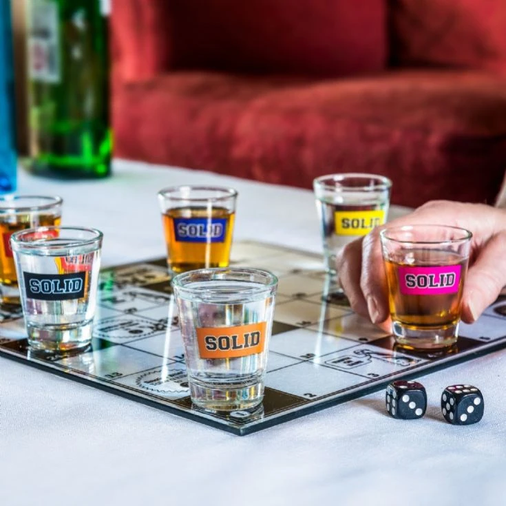 The counters are shot glasses, making this game the ultimate drinking game and one that’s not to be missed.