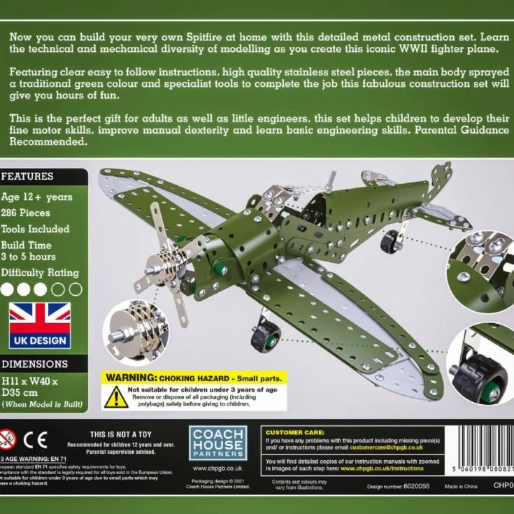 Going back in time to WWII, the Spitfire was a fantastic single-seat fighter plane that became a symbol of the Battle of Britain. Now you can build your very own iconic plane with this Spitfire Model Metal Construction Set. Get your little engineers together and pay respect to this engineering masterpiece. At a level 3 difficulty rating, this World War II fighter craft is fantastic for intermediate-level model builders. A great gift for those who love historic aircraft. Product Reference: FM-CHP001