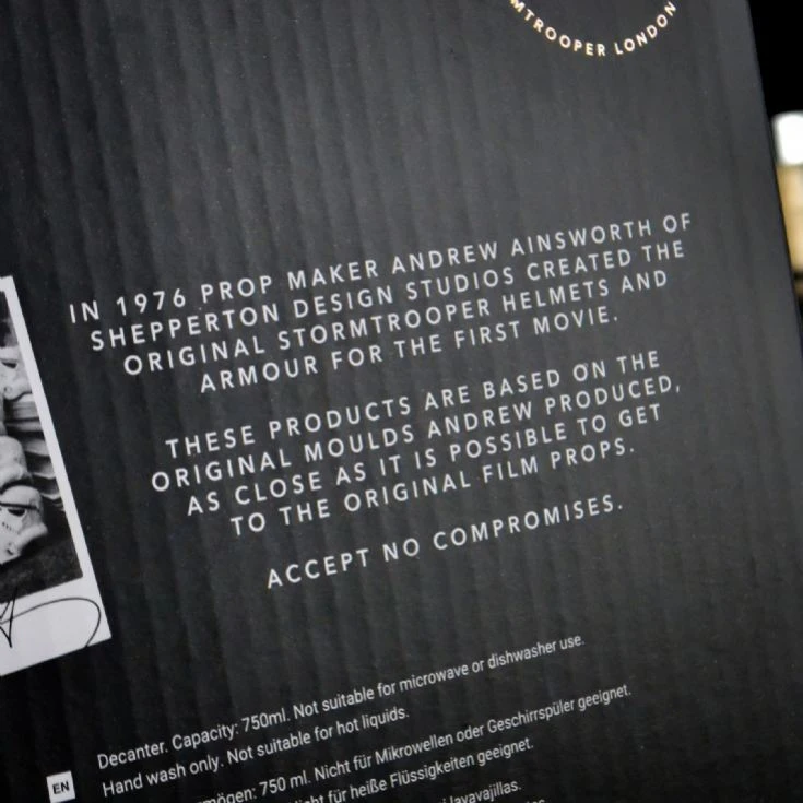 If, on the other hand, you’re a supporter of The Empire and Stormtroopers in general then you can view this glass as a tribute. Each and every time you decant liquid it’ll be a loving nod to the Galactic dictatorship you hold in such high esteem.