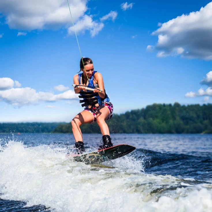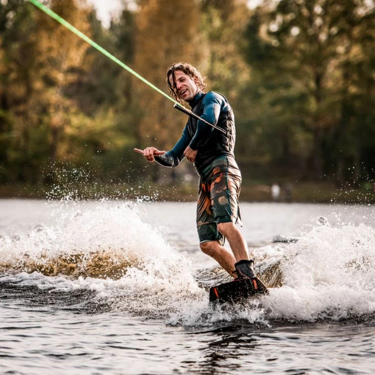 After a quick session of on-land training you will be ready to take to the water. You slip into your bindings and then you’re up on your board for the first time. Pretty soon you’ll progress from coming out of the water, to moving around and eventually jumping the wakes. It’s amazing how easily you’ll pick up the balance and riding technique, helped by the experienced and fully qualified instructors. Please note: all experiences are run by cable tow at this location. You can choose between a 15 minute one-to-one session on straight line cable, or 1 hour on main cable. Beginners will have to kneel on the board. Product Reference: AS-CUAY