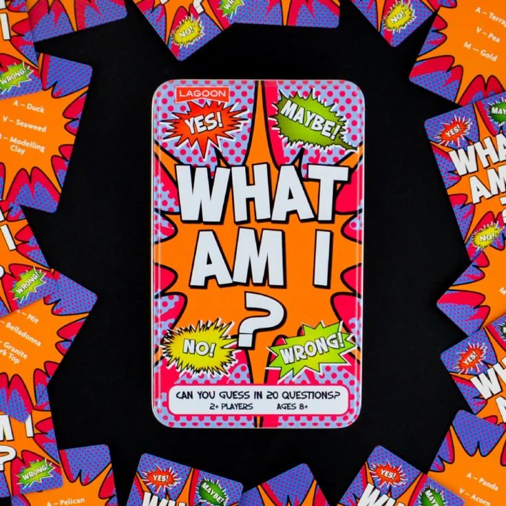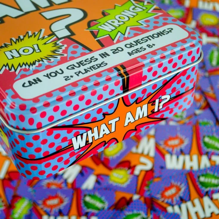 What Am I? A great, easy to play game for the whole family! This game is a cross between Animal, Vegetable or Mineral and Twenty Questions. The first player picks a card and choose an object off the list that they think the others wonÃÂâÃÂÃÂÃÂÃÂt be able to guess. The other players then have 20 questions to try and discover what the object is. The first question is always ÃÂâÃÂÃÂÃÂÃÂIs it an Animal, Vegetable or Mineral?ÃÂâÃÂÃÂÃÂàthen take it is turn to ask question where the answer can only be yes or no. The player who successfully guesses the object wins the card and the player with the most cards is the winner! This fun-packed game is great for dinner parties and family occasions and packaged in a colourful tin makes a wonderful gift or travel game. Product Reference: FM-UNI039
